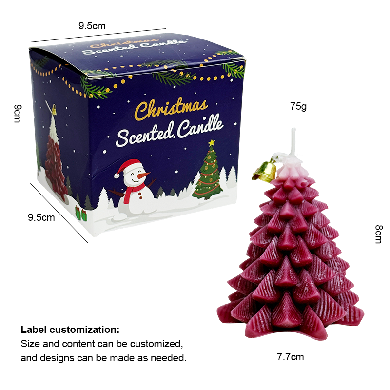 This red vanilla Christmas tree - shaped scented candle features a delicate and playful appearance with a Christmas tree design. It uses high - quality cotton and linen wicks, which produce no black smoke and have a stable, non - wavering flame during burning. Made from natural soy - blended wax, it is environmentally friendly and healthy, with no harmful residues after burning, and has a long - lasting fragrance. The scent is a sweet and gentle vanilla note, like the aroma of freshly - baked vanilla pastries in winter. It can easily create a warm and romantic festive atmosphere, adding a sense of ritual to the space. It serves as both a practical scented product and an attractive decoration, and can be preserved for a long time to adorn life.